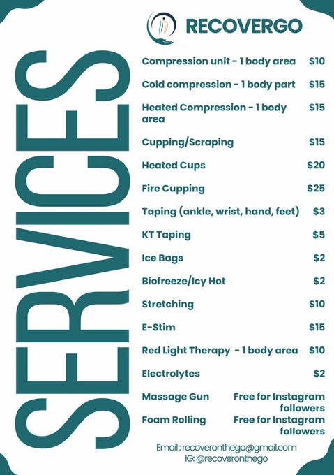 Alex and Analisa here and we’re the team behind RecoverGo! We are state licensed and nationally board certified Athletic Trainers with over 10 years of combined experience. We believe that quality recovery shouldn’t be left to just fancy medspas and stuffy clinics. Recovery that optimizes athletic performance should be accessible to everyone and meet athletes where they are. That is why we created RecoverGo, a mobile recovery station that can keep you in the game from anywhere!